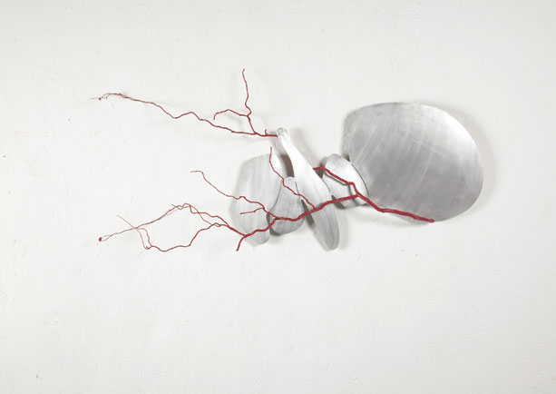 Des graines. Aluminio y rama de sauce. 60 x 110 cm