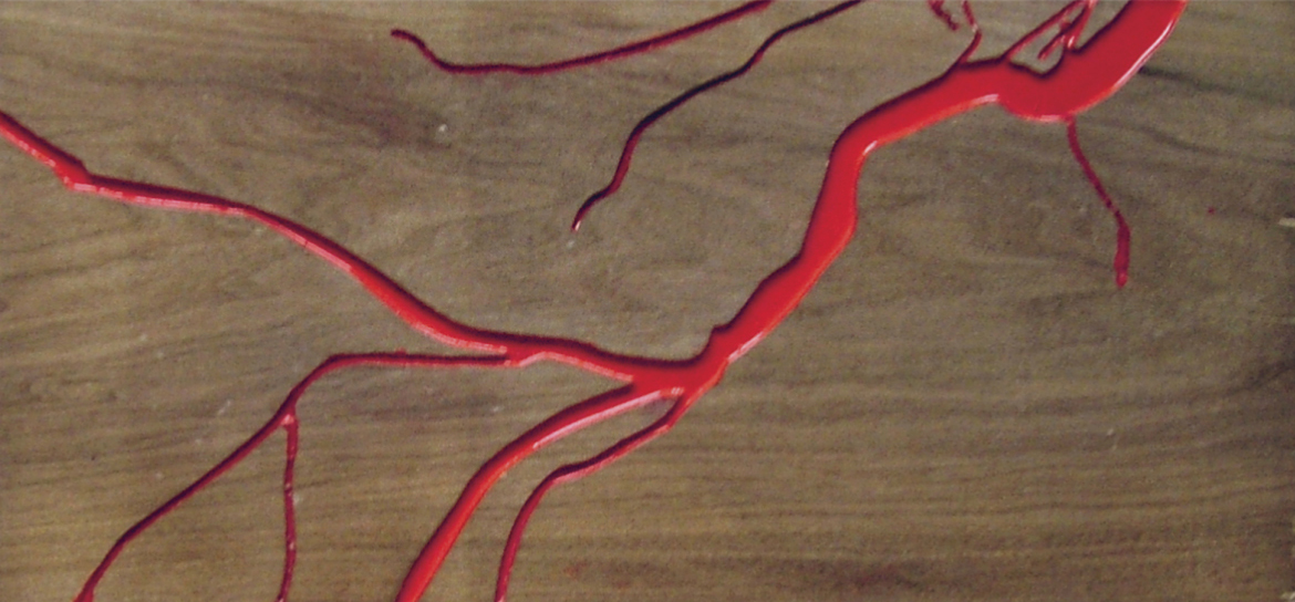 Blood II. Iroco, colofonia y goma-laca. 17 x 36,5 x 4,5 cm
