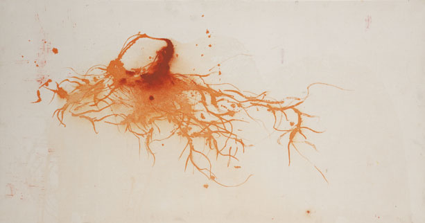 Piedra y raíces . Pigmento s / lienzo s / tabla 53 x 100 cm.