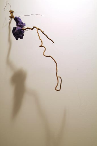Encaramada III. Rama de sauce rizada y esponja pigmentada. Dimensiones variables